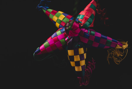 Portrait of a Colorful Mexican Pinata on a black background
