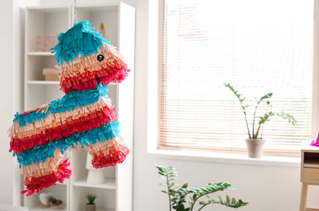 Mexican pinata hanging in the living room