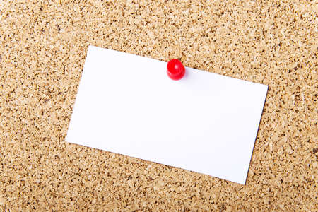 Close-up of a single blank paper pinned with a red thumbtack on a cork board, perfect for adding custom messages