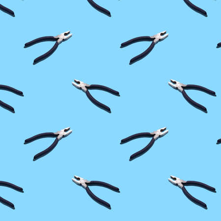 Pliers on a blue background, pattern, hard shadows. Construction tools, repairs. Background for the design.