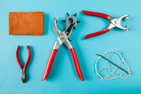 Pliers, piercing and riveting tools. Drilling and riveting tools for the processing of fasteners and holes in leathercraft or tailoring