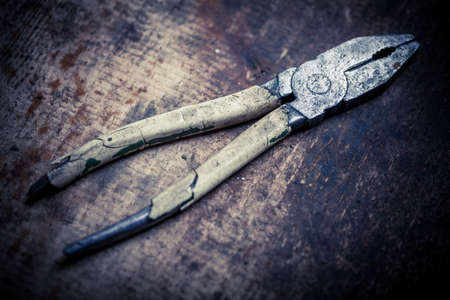 Old pliers placed on a concrete floor and have copy space for design in your work.