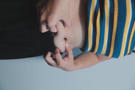 Parent Fastening ChildS Shirt With Gentle Hands, Intimate Morning Routine At Home, Soft Fabric, Closeup Of Buttons, Caregiver Focus, Calm Household Light, Supportive Family Moment.