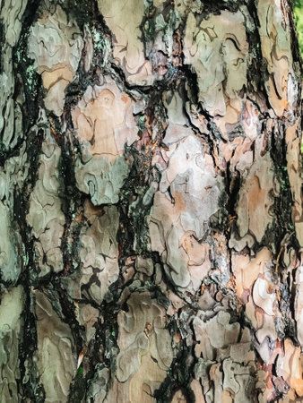 beautiful interesting texture of rough bumpy Crimean pine bark of pine tree foreground closeup