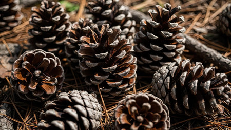 AI Generated. Pine Cones and Needles in Winter Sunlight