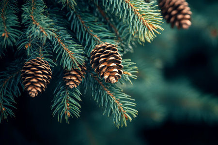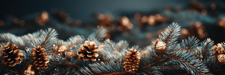 Christmas tree branches with pine cones and needles, AI