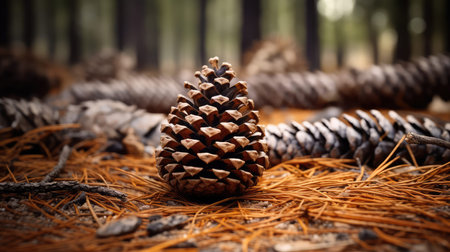 pinecones strewn on a hiking trail in a woodland park, created with generative ai