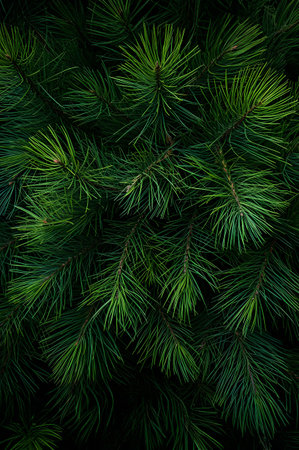 AI Generated. Close up view of dark green fir needles creating a natural textured backdrop