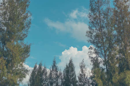 vintage tone image of pine tree and beautyful blue sky background