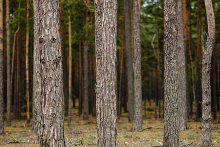 Pine tree trunks background. Pine grove. Ukraine