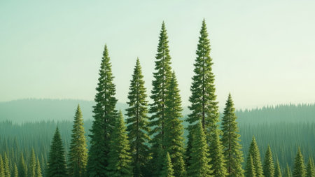 The Lush Canopy: A Captivating Display of Growing Green Coniferous Trees in Harmonious Proximity (AR