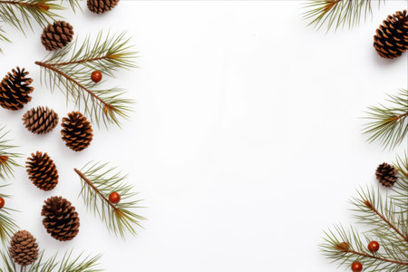 Winter Delights: Minimal Christmas Concept with Pinecones and Pine Branches on White Background