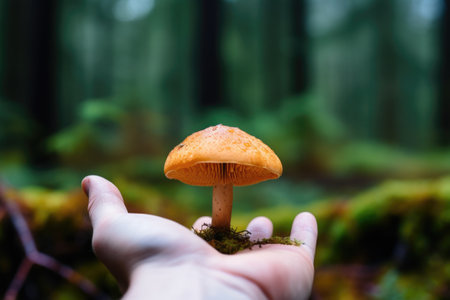 a hand holding a single mushroom, created with generative ai
