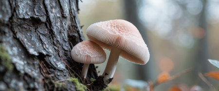 AI Generated. Macro Shot of a Delicate Pink Mushroom Growing on a Tree