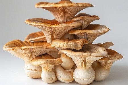 Group of oyster mushrooms isolated on white background. Close up.