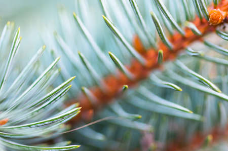 Macro texture of a coniferous branch close-up.