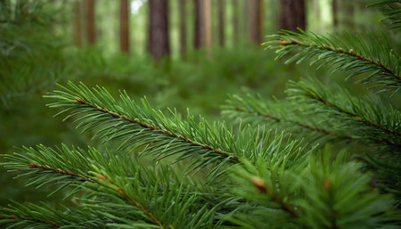Green pine branch texture with copy space, perfect for wellness and eco design. Natural soft-focus pine texture in macro view with eco-friendly concept Banner