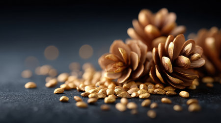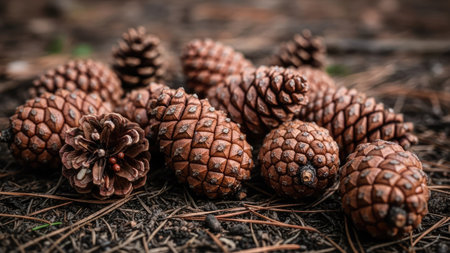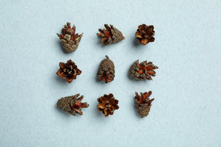 Captivating Pinecones: An Artistic Flat Lay Shot with Copy Space