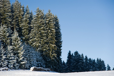 winterly mood in Black Forest with trees and meadow