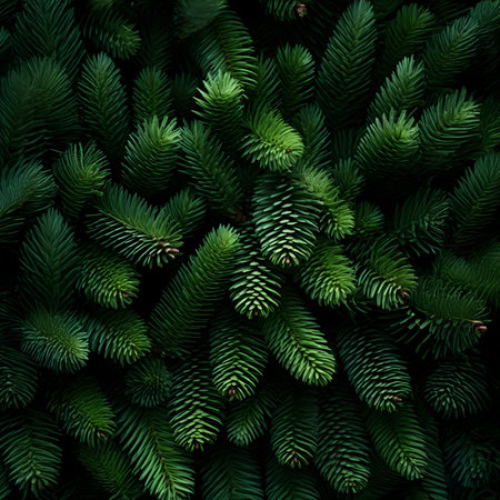 AI Generated. Close up view of dark green fir needles creating a natural textured backdrop