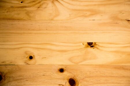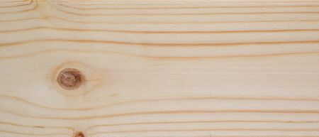 Wooden texture background, pine board, spruce table with knots. Horizontal banner. Top view light wood textured surface with natural pattern. Timber backdrop. Rustic craft. Workbench, floor.