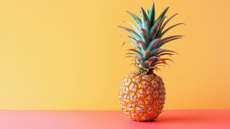 A fresh pineapple displayed on a vibrant gradient background of yellow and orange, creating a tropical and lively aesthetic.