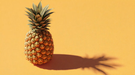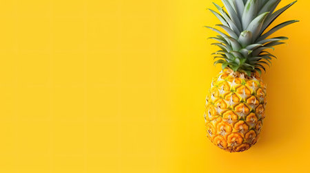 Pineapple against yellow background, vibrant minimalism. Tropical fruit and summer concept