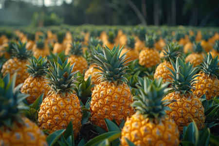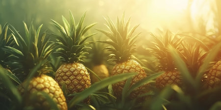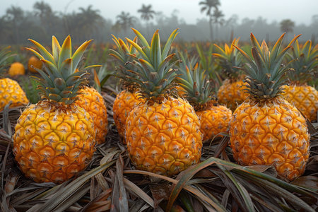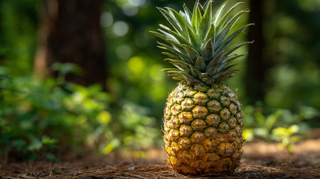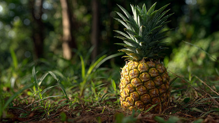 AI Generated. Fresh pineapples sit amidst a vibrant green landscape