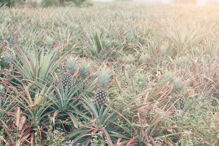 Pineapple field in the morning. Pineapple farm in Thailand.