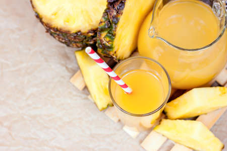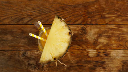 Pineapple juice and slice placed on a wooden table
