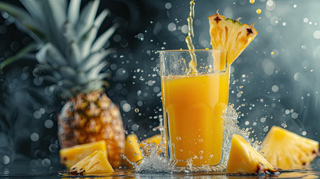 AI Generated. A glass of water with a slice of pineapple splashing out of it