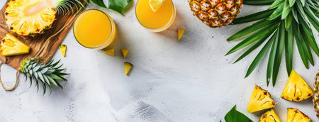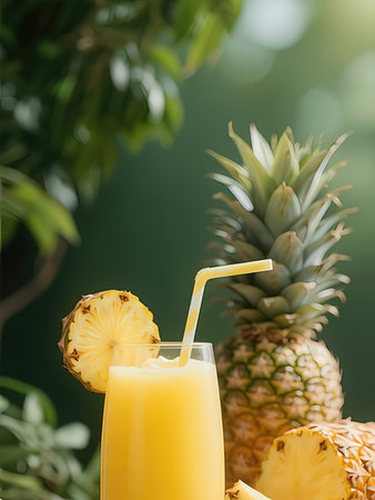 Savor the tropical vibe with this vibrant pineapple and juice photo. Perfectly captures the essence of summer freshness and tropical paradise. Generated A.I.