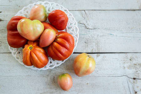 Fresh Organic Ripe Heirloom Tomatoes in a variety of colors