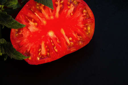 Fresh tomatoes on a dark wooden background. Harvesting tomatoes. low key.