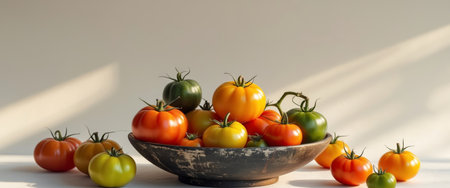 AI Generated. Colorful Roasted Heirloom Tomatoes in Rustic Dark Bowl