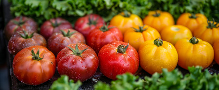 A vibrant assortment of fresh organic tomatoes showcasing various colors and shapes, perfect for culinary use or agricultural displays, symbolizing healthy living.