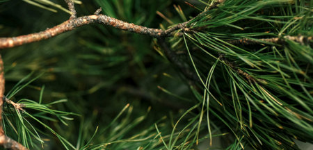 Green pine branch texture with copy space, perfect for wellness and eco design. Natural soft-focus pine texture in macro view with eco-friendly concept Banner