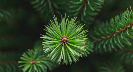 A detailed macro shot showcasing the fresh, bright green needles of a pine tree, highlighting the texture and natural beauty.