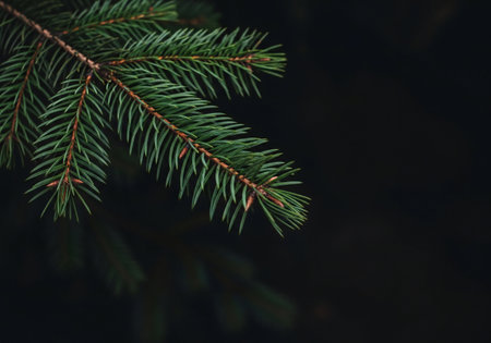 closeup of pine branches with dark copy space