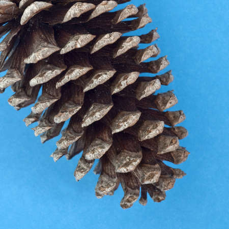 Close Up of Autumn Pine Cone on Vibrant Blue.