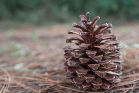 Pine cone close-up on blurred background