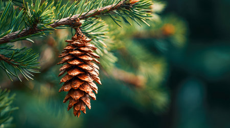 A pine cone on a branch. Generative AI.