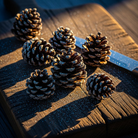 Captivating Pinecones: An Artistic Flat Lay Shot with Copy Space