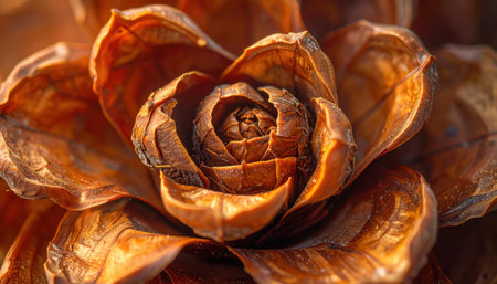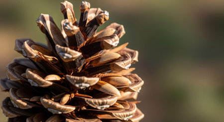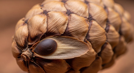 Pinecone scales in overlapping spirals gentle raking light top copy area representing natural texture suitable for nature decor and design