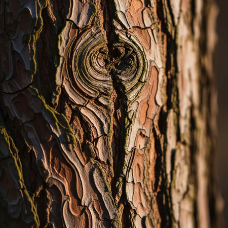 Natural textures of tree bark close-up, capturing earthy tones and rough surfaces