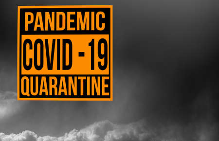 Pandemic sign warning of quarantine due to Covid-19 or corona virus in the USA using dark cloudy storm clouds in the background