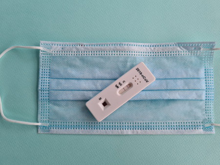 a positive corona antigen test on a mask