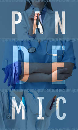 Medical workers with text PANDEMIC. Concept of epidemic