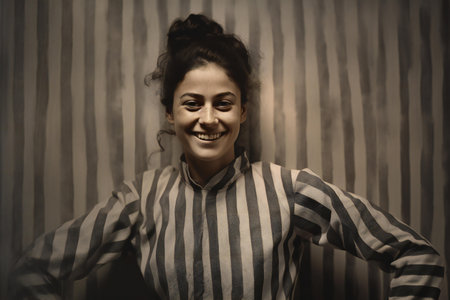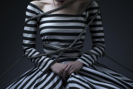 Elegance Embodied: A Woman Enthralls in Front of a Striking Black and White Striped Wall