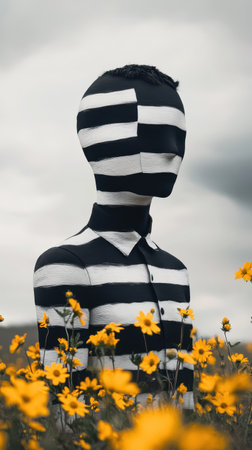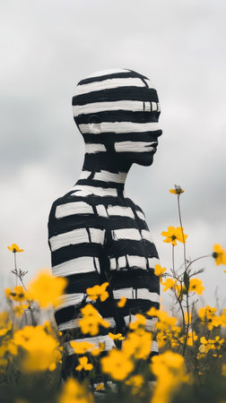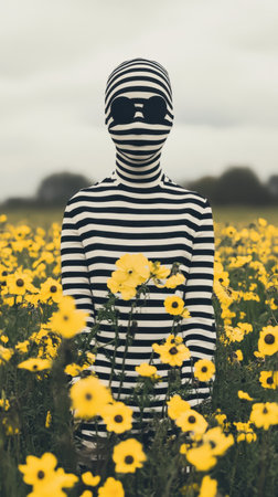 Striped Body Figure in Flower Field